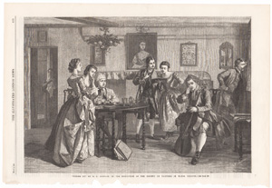 Original engravings and wood cuts of musical subjects from various 19th-century sources such as