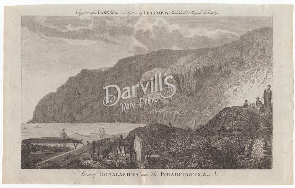 | IMPORTANT NOTE: We do not normally sell reproductions of any kind. However, back in the late 1970s Darvill's Rare Print Shop commemorated the 200th anniversary of Captain James Cook's Voyages with a set of reproductions of the most famous images from those voyages. The above print is one of those 50+-year-old reproductions, made from original engravings in our possession. |