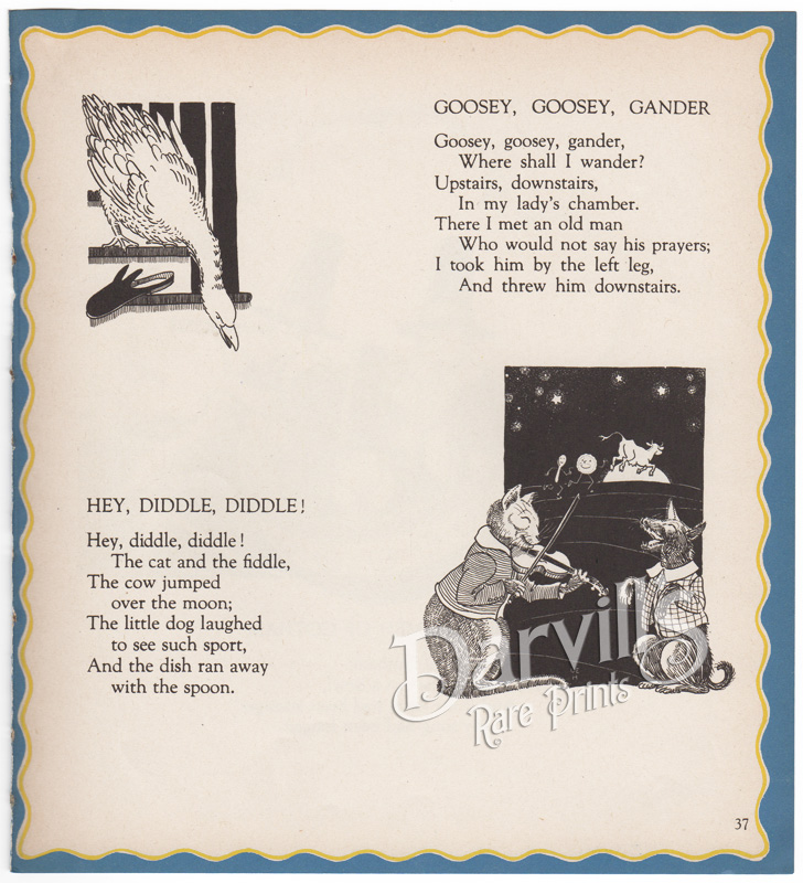Original vintage print from "Berta and Elmer Hader's Picture Book of Mother Goose" 1944