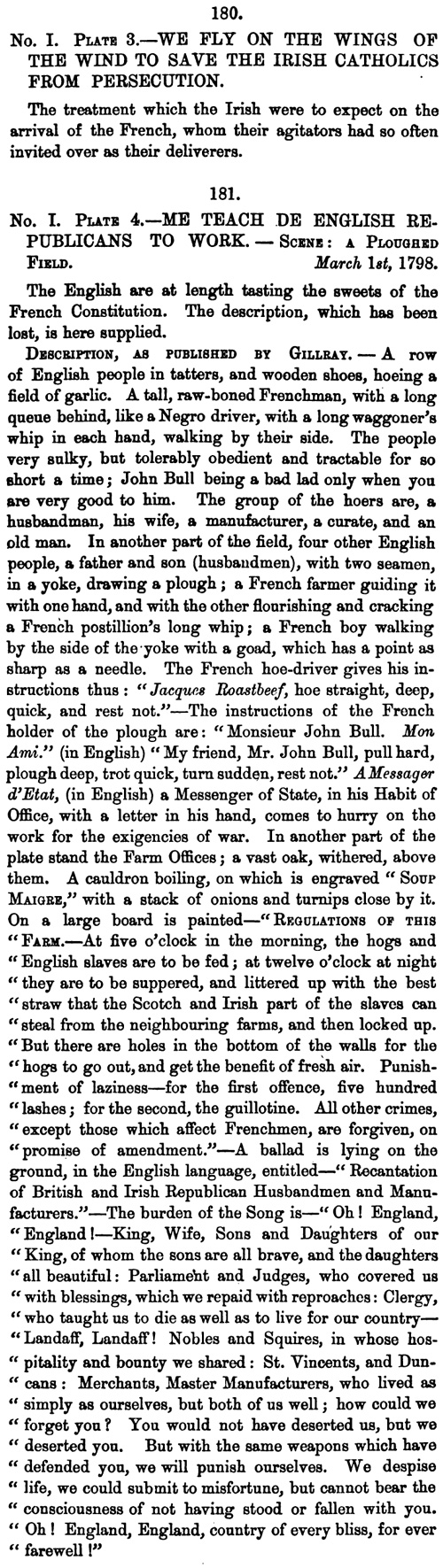 Source: Historical & Descriptive Account of the Caricatures of James Gillray; Comprising A Political and Humorous History of the Latter Part of the Reign of George the Third by Thomas Wright, Esq., F.S.A. and R. H. Evans, Esq. Published: London, Henry G. Bohn, 1851 |