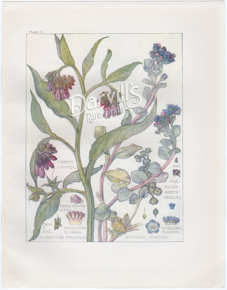 The wealth of talented artists in botanical illustration never ceases to amaze and H. Isabel Adams is another outstanding discovery. A member of the Botanical Society of the British Isles and a fellow of the Linnaean Society, she was a graduate of Birmingham Art School. She worked in the Arts and Crafts style, designing bookplates and children's books: Little Red Riding Hood and the History of Tom Thumb. Not much is known about this artist, but the beauty of the Arts and Crafts botanicals speak to her talent! “We have seen few flower drawings (always excepting Curtis's Flora Londinensis) that have given us so much pleasure to look at. From one to half-a-dozen plants are figured on a page; but Miss Adams manages to keep the character of each species distinct, and the grouping is often full of skill and grace. We have nothing but praise for the colouring, especially the various greens. The yellow of the rock-rose is beautiful, and the more subdued mauves and pinks are excellent.” |