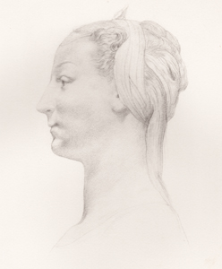 Study in black and white chalks on grey paper of a head of Dante, and of the costume of an artist |