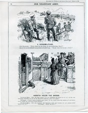 THE FOLLOWING 11 SHEETS ARE FROM THE SUPPLEMENT TO "PUNCH, OR THE LONDON CHARIVARI" FROM MARCH 3, 1915 TITLED "OUR VOLUNTEER ARMY". (We have not typed the subtext to each cartoon, only the titles.) |
